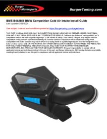 Designed from the ground up to be the best in every aspect with over a year invested in street and track testing. This is the first intake for the B46/B48 G chassis 2, 3, and 4 Series that follows a clean OEM+ look and materials but has the intoxicating sound and performance of an open intake. Inside, you’ll find our proprietary renewable inverted cone performance filter; outside, you’ll find unsurpassed OEM fitment, materials, and quality. The BMS competition intake has a clear window on top for quick filter inspection, uses the OEM cold air inlet, and has a huge inlet hole on the cold side of the airbox for more air and even more fantastic sound! The rubber accordion hose and factory resonator are replaced with a smooth pipe to deliver less turbulent air to the turbo. This intake takes everything good about the factory intake and squeezes more sound and performance out of it while maximizing airflow to your B48 engine!