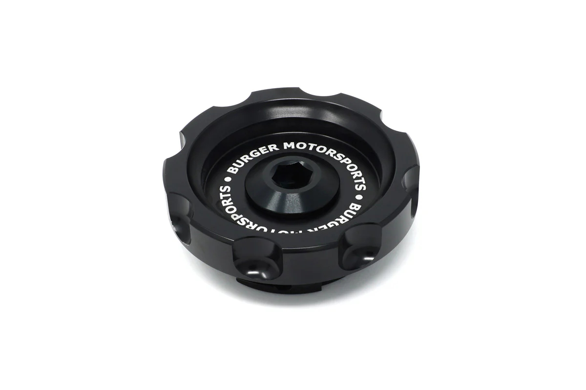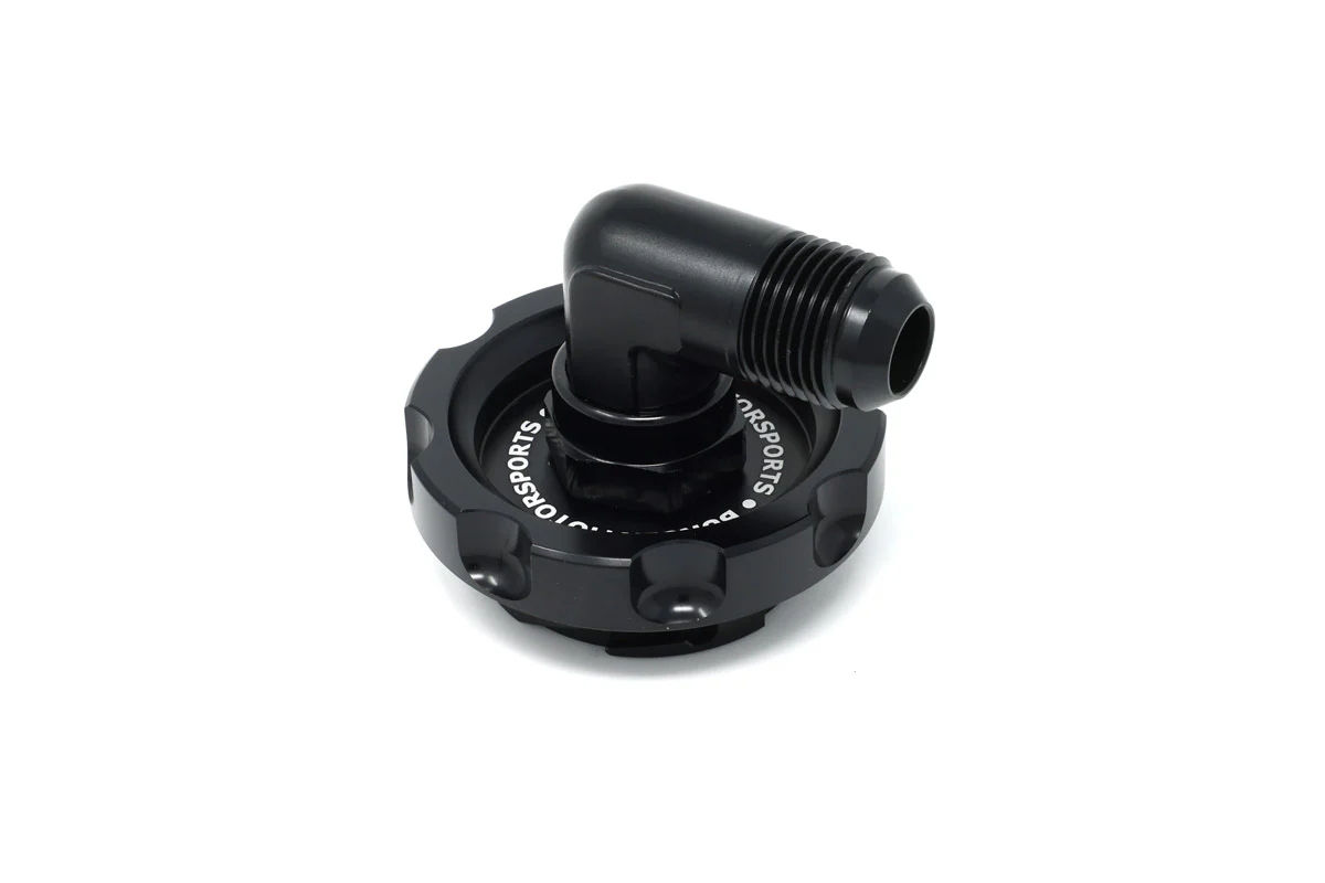 The Burger Motorsports Billet Oil Filler Breather Cap replaces your B58/S58/S68 BMW factory oil filler cap and offers a -10ORB threaded fitting for crankcase ventilation. Our kit offers an optional -10ORB 90º breather to -10AN Fitting to connect to an oil catch can of your choice or removable black off cap to use the cap with no ventilation.