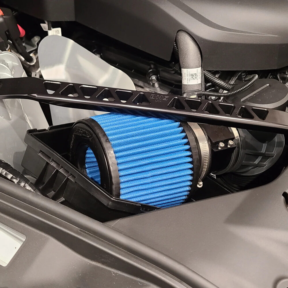 Burger Motorsports billet strut braces are recommended to help secure the intake.