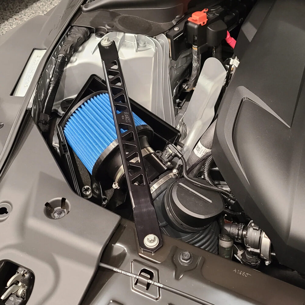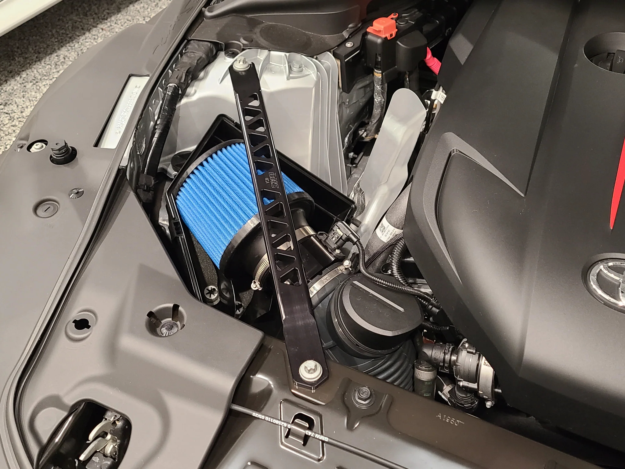 This plug and play air intake system unlocks up to 8whp to the wheels from your B58 powered Supra/Z4. In addition to the extra power throttle response, turbo spool, and sound are dramatically improved, finally allowing you to hear your turbo spool up under heavy acceleration. The system is CNC machined from billet aluminum, anodized black for a clean look, and includes a reusable S&B high flow inverted cone filter. The OEM cold air intake tube remains fully functional. Install takes only minutes and is fully reversible. Made in the USA.