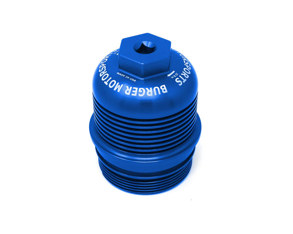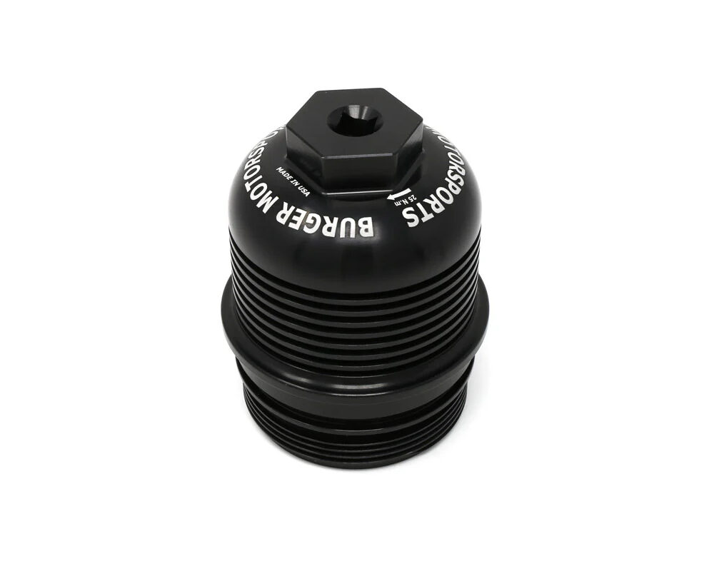 The Burger Motorsports billet aluminum B58 oil filter cover directly replaces your weak OE plastic cap for greater protection, ease of removal/install, and great looks under the hood. You can use a 3/8″ inch drive ratchet or torque wrench to install and remove. The built-in 32mm hex head does not require a special removal/install tool like the factory cap. Uses the OE oil filter, filter housing o-ring, and filter insert. Anodized for protection. This quality part is a must for any serious BMW owner.