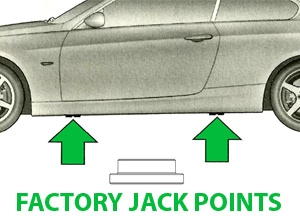 Safely jack up your BMW / MINI at any of the 4 factory jack points the way it was meant to be lifted. We designed this convenient metal jack pad adapter to mimic the factory scissor jack to fit perfectly in the jack points. No more worries or broken jack points, damage to your rocker panel or vehicle undercarriage.