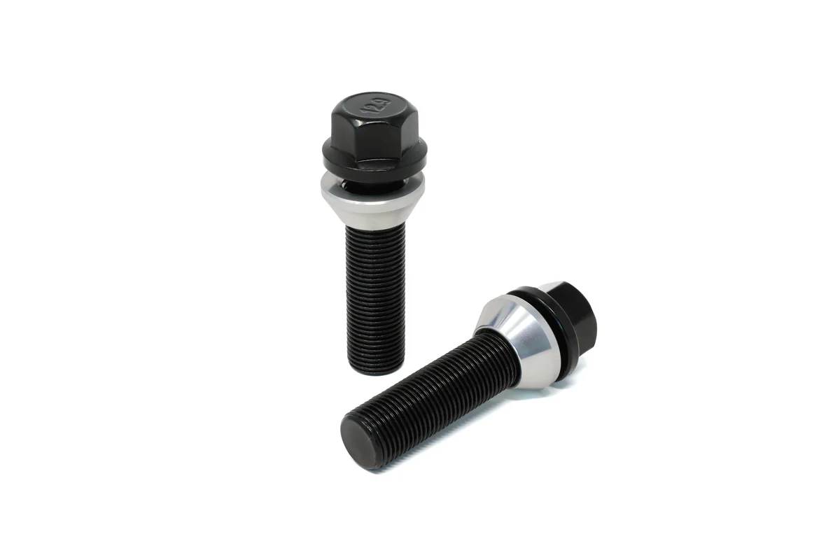 Concentric Floating Seat Lug Bolts: Each bolt is made from 12.9 Motorsport Grade steel for strength and safety and zinc plated for corrosion resistance. They contain a concentric floating seat washer to give the bolt a secure mating surface to torque to stay torqued and to reduce wheel seat chafing during installation and removal.