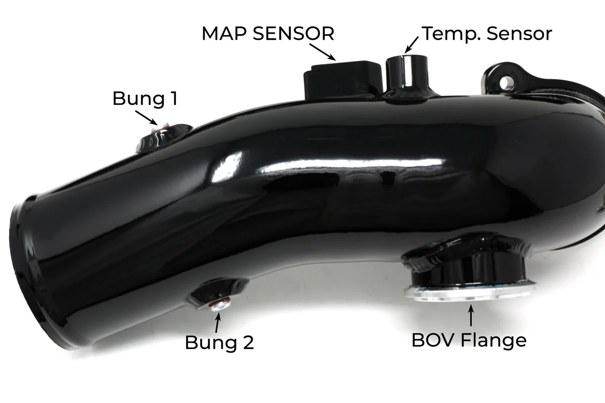 Upgrade your flimsy OEM Gen1 B58 BMW charge pipe to our heavy-duty aluminum replacement to prevent charge pipe failure. Designed and manufactured by Burger Motorsports in the USA. The BMS Elite is the highest quality B58 charge pipe upgrade on the market. This replacement charge pipe features all-aluminum construction, high-quality glossy black powder coat finish, CNC machined flanges, 2 optional 1/8″ NPT methanol bungs, OEM style mounting hardware for a direct fit, and a lifetime warranty. Because we use the OEM mounting system, unlike other charge pipe solutions, this charge pipe installs in minutes, retains all emissions fittings, and is 100% reversible. Lifetime warranty. Made in the USA.