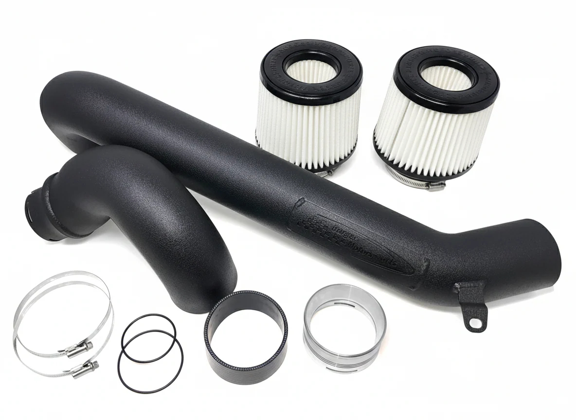 Finally, an intake system worthy of your S58 G87 M2, G80 M3, and G82 G83 M4! The BMS G8x S58 Performance Intake retains everything that’s good about the OEM intake including the cold air ducting and lightweight heat shielding airbox bottom but replaces the top end of the intake with higher flow 3.5″ ducting and quality BMS inverted cone air filters to match.