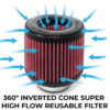 Our Burger Motorsports inverted cone filters not only outflow your stock paper filter and last the life of your vehicle, they also include a built-in velocity stack. Velocity stacks allow even more air to be smoothly sucked into your intake system and are used in most racing applications. Available in Oiled Renewable and Dry Extendable.