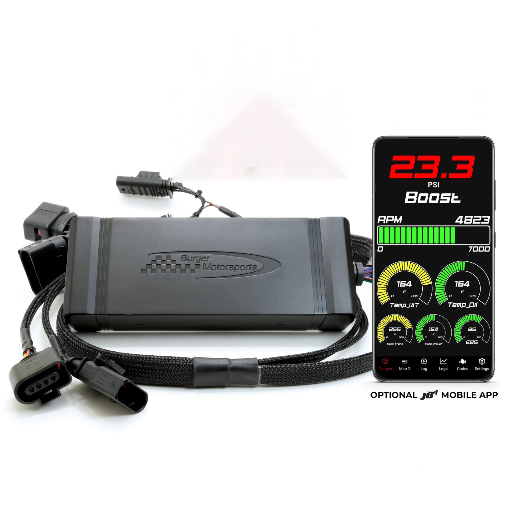JB4PRO by Burger Motorsports is our brand-new in-house adapter designed from the ground up for ease of use and reliability. Our new adapter fits fully inside the JB4 enclosure for enhanced weather protection and a more streamlined look. The JB4PRO Free app features an intuitive easy-to-use interface, help buttons, and advanced log analysis tools that can estimate the performance of your car and help identify any tuning concerns. More information on the differences between the app options is available here.