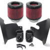 Featuring high-quality BMS inverted cone filters the BMS intake offers the highest possible flow in an attractive and easy to install/remove package. By replacing your restrictive factory airboxes throttle response is improved and you finally get to hear what is really going on under the hood. Power gains are in the 5-15hp range. The higher your boost levels, the more gains you’ll see. Machined heat shields ensure incoming air is directed from the factory cold air openings. MAF housings are CNC machined and anodized black for a precision fit and long life.