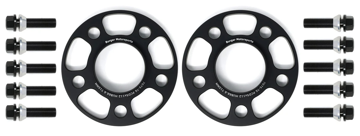 Build & Quality: Each Burger Motorsports wheel spacer is CNC machined from high grade 7075-T6 aluminum alloy and anodized black for protection. Our BMW Wheel Spacers are sold in pairs (2pcs) with 10 extended concentric swivel washer lug bolts that exceed OE standards. To do the whole car you will need 2 spacer kits. All Burger Motorsports wheel spacers are hub-centric and are safe to use on xDrive (all-wheel drive) BMW vehicles.