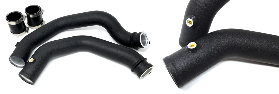 The BMS S55 replacement charge pipes are made from heavy-duty aluminum and are designed with CNC flanges and a protruding lip for a secure OEM like fit. They are finished in a wrinkle black powder coat to match the engine bay and we’ve also incorporated a pre-capped 1/8″ NPT bung into each pipe. Includes replacement heavy duty couplers, hose clamps, and all hardware required for the installation.