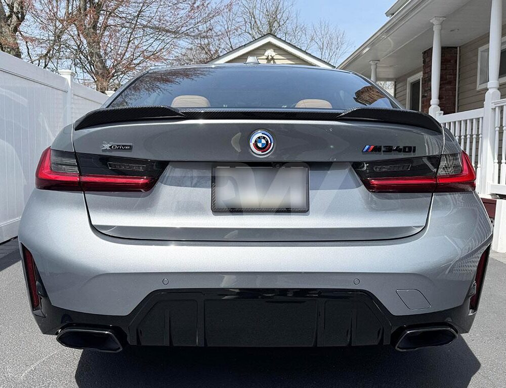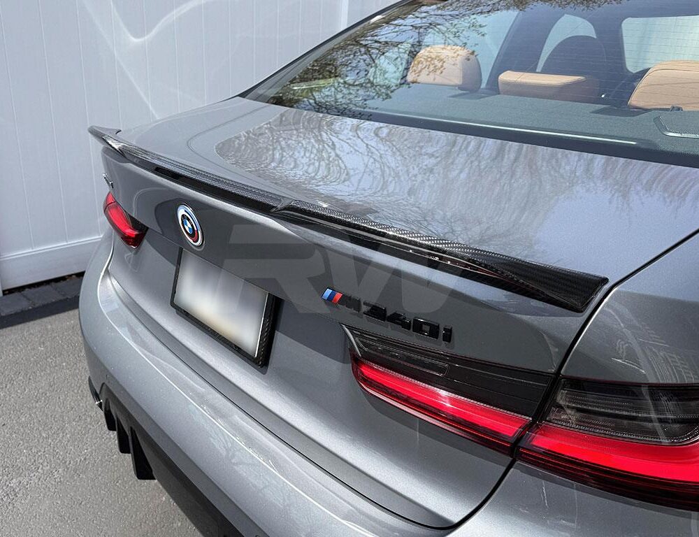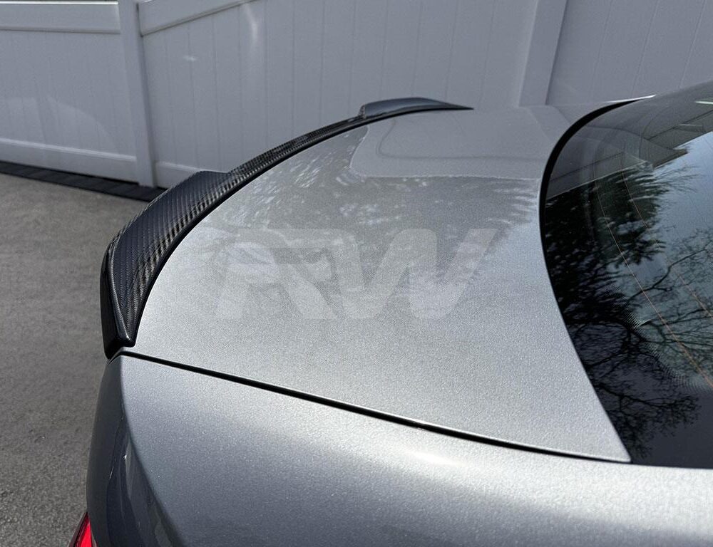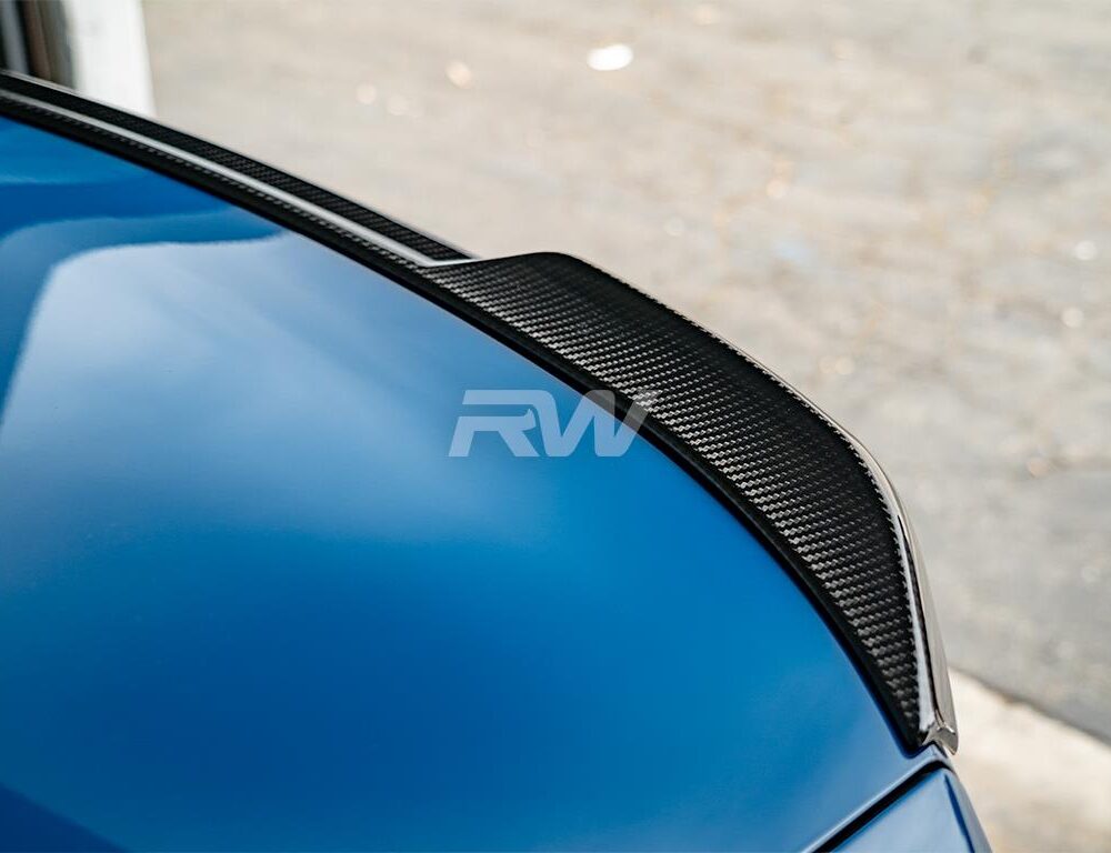 RW Carbon is proud to introduce the DTM Style carbon fiber trunk spoiler for the BMW G20 3-Series or G80 M3. This spoiler provides a sleek, yet aggressive look that perfectly complements other RW Carbon products. Installation is quick and easy, requiring only 3M double-sided tape. Each trunk spoiler is crafted using genuine carbon fiber in a 2×2 weave pattern and then clear coated and polished for a lasting shine. Upgrade your BMW’s appearance today with this lightweight, durable trunk spoiler. For any questions, feel free to reach out to us!