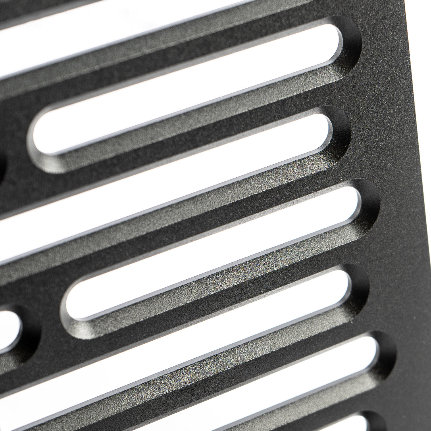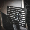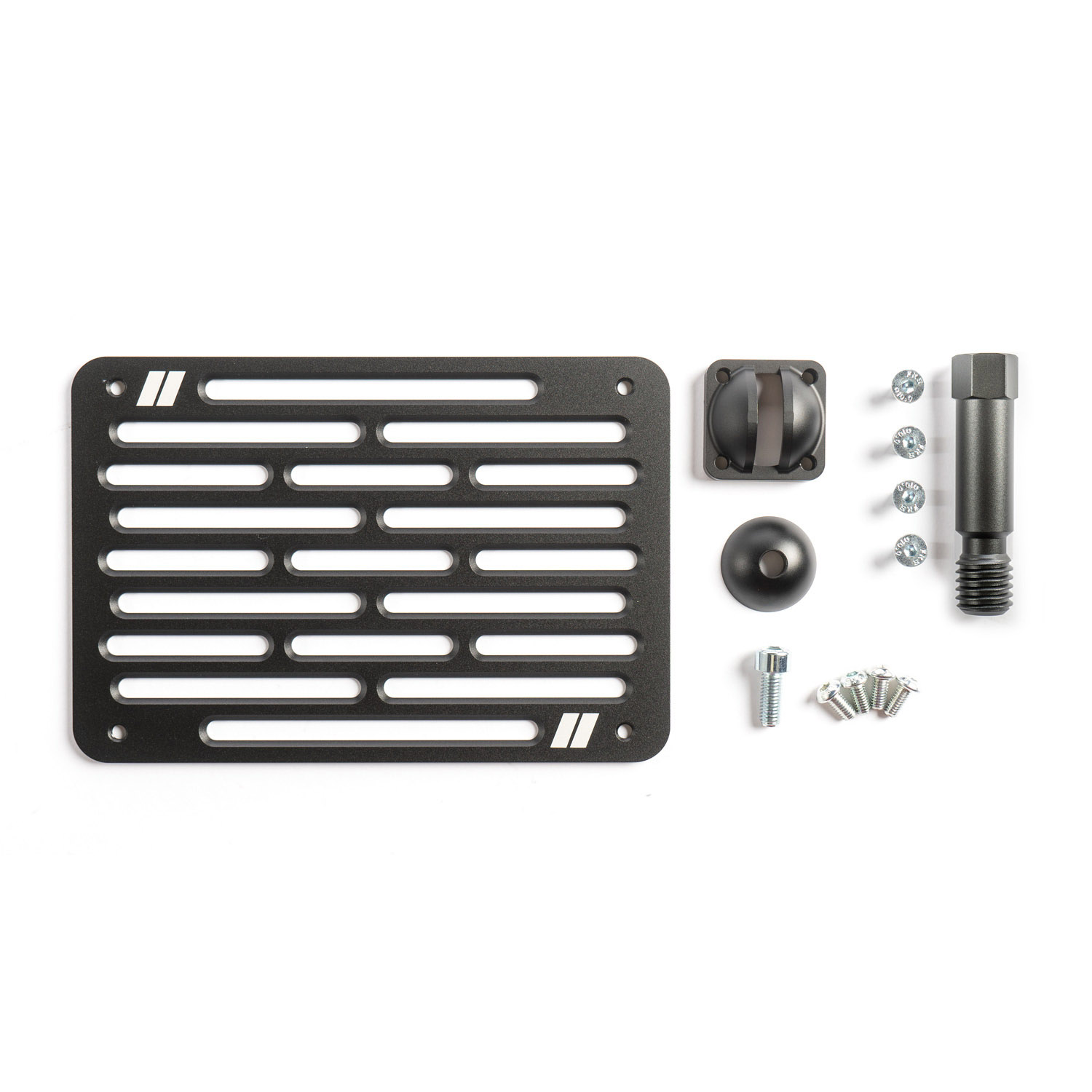 A threaded stud with pivoting head screws into the tow hook receptacle, resulting in a flush and secure mount. The Plate bracket has unlimited mounting variations to ensure stability, all while not blocking intake vents, lights or sensors. Installation is quick and easy with standard hand tools.