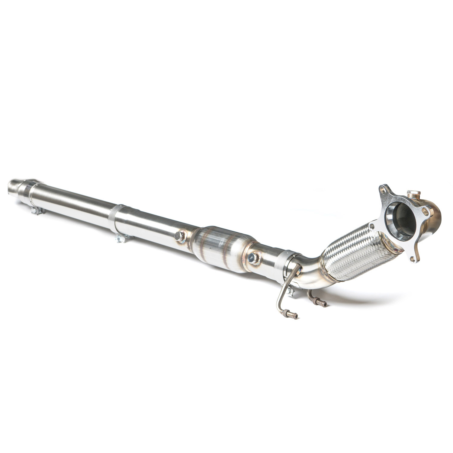 We are proud to release the new CTS Turbo 3″ Stainless Steel downpipe with high-flow cat for the Audi /VW 2.0T FSI and 2.0TSI transverse engines. Unfortunately, the factory downpipe that comes as standard equipment in your car was designed for anything but performance.