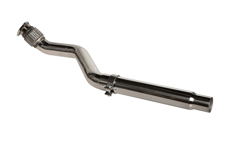 Our non-resonated downpipe is designed to seamlessly fit in place of your restrictive stock front muffler pipe, which is situated immediately after your Catalytic converter/Test Pipe/HFC.