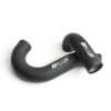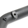 The OEM charge piping uses a rubber hose as turbo outlet connection and plastic cold-side pipes with a flow-impeding “resonator”. Factory piping is not optimized for performance; so we had to step in and make our charge pipe set of 2.5″ aluminum mandrel-bent tube. Our parts replace soft turbo outlet hose and the small resonated plastic throttle body pipe.