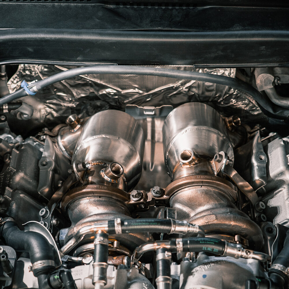 In addition to unleashing the power and performance of your 4.4 Twin Turbo, our race downpipe will make your vehicle sound like it really should. When installed with factory exhaust it produces a louder and deeper growl with much more pronounced exhaust “crackle” on downshift. While up-shifting you will enjoy a confident “punch!” as you bang through all 8 gears. The sound will be even louder if you already have an aftermarket exhaust system.