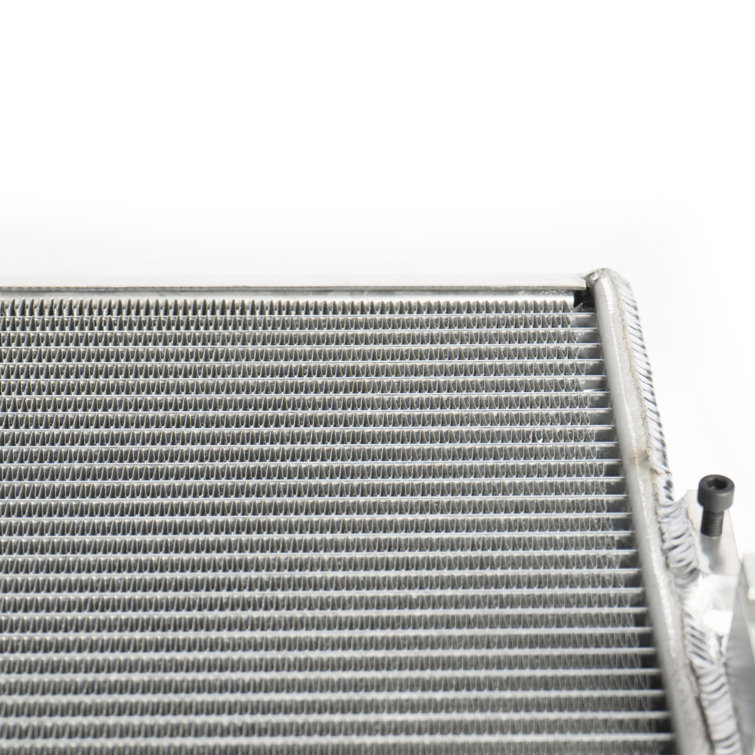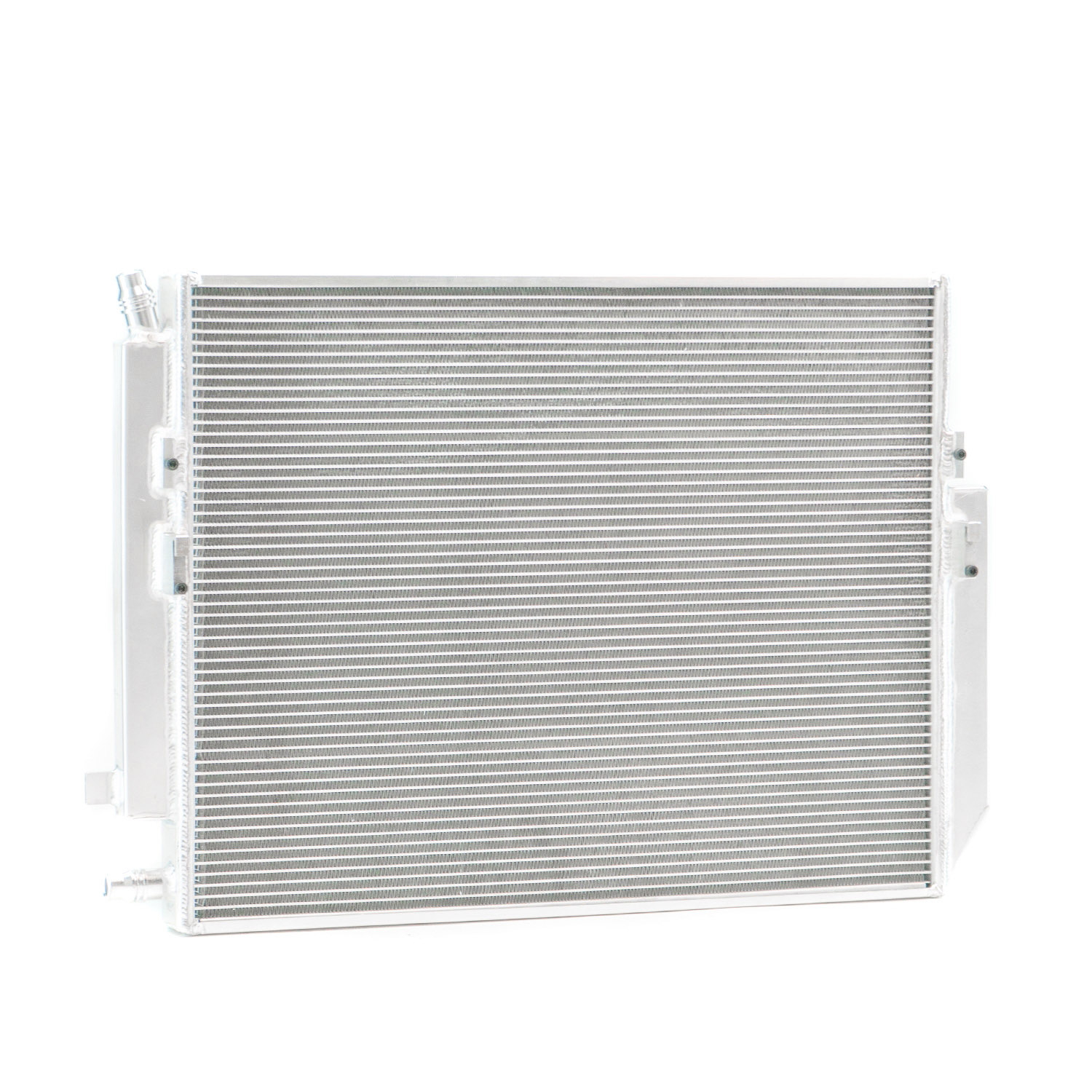 The factory front-mounted heat exchanger is small and not efficient enough to provide enough cooling to tuned B46/B48/B58 engines. We designed our heat exchange to overcome that problem. The double-pass core was made to be higher flowing and larger than the factory but still drop into the stock location. CNC machined mounting points and hose connections allow for a seamless install without any need to cut or trim any factory parts.