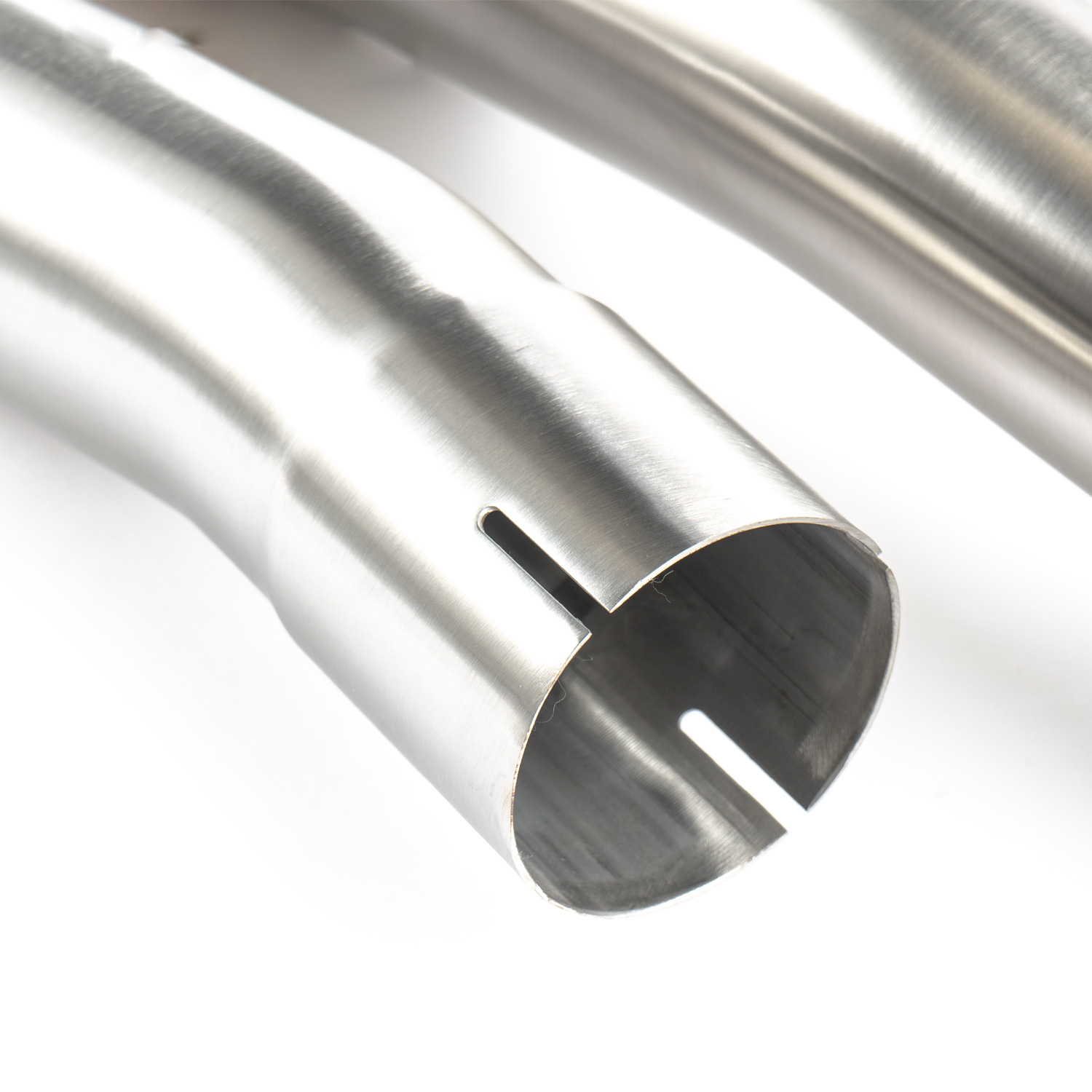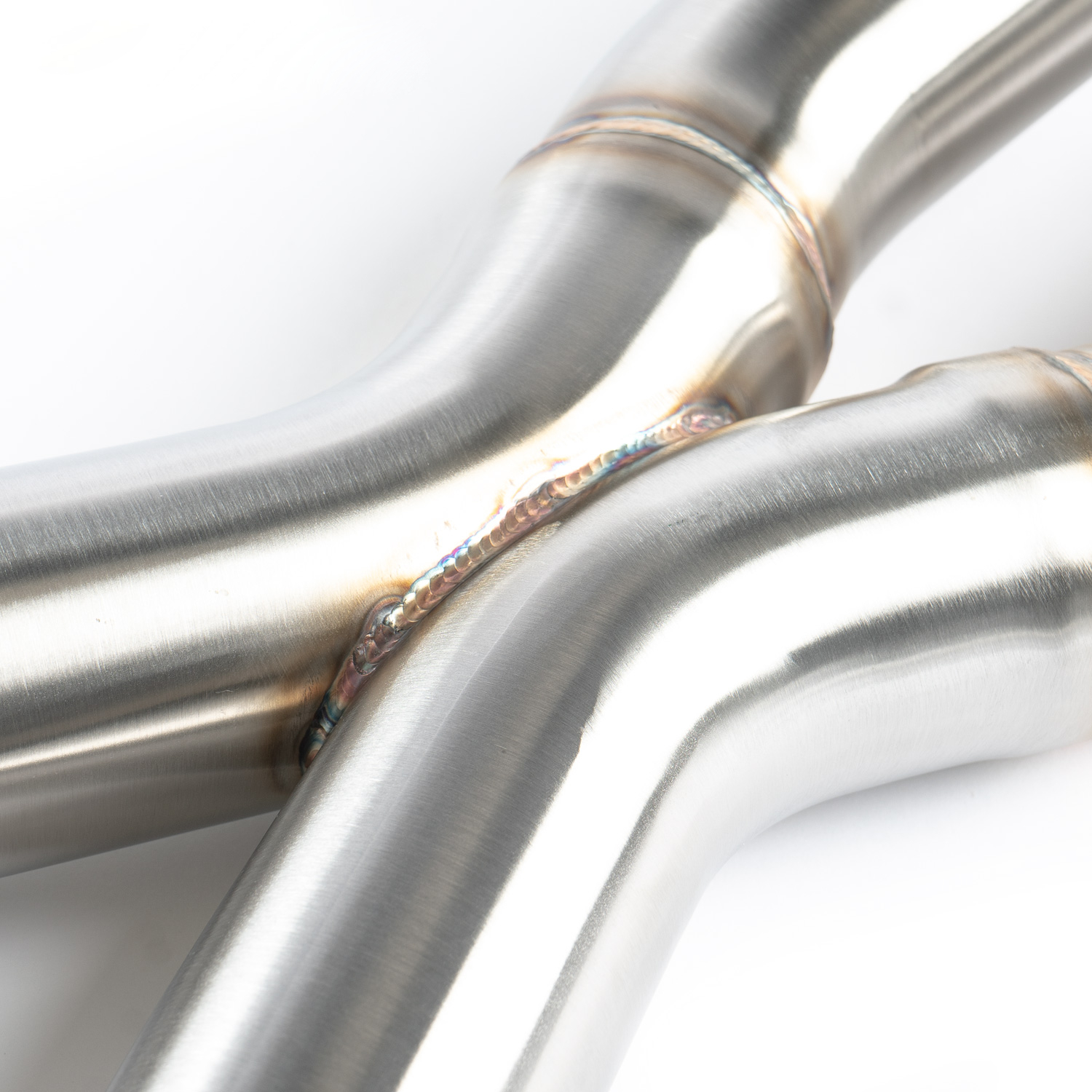 This offering involves the removal of the factory hydro-formed resonated section, which is then replaced with 70mm T304 stainless steel tubing, enabling improved exhaust flow. Instead of the factory resonator, CTS Turbo integrates a meticulously crafted X-pipe made from mandrel-bent tubing to minimize restrictions. This X-pipe is a standout feature both in terms of aesthetics and its impact on the exhaust sound.