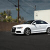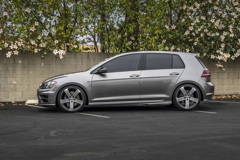 Taking our experience on the MQB platform, along with testing on our in-house S3 and MK7 GTI, we have developed what we feel is the best lowering spring option for those wishing to utilize factory dampers. Using a linear design (similar to OEM) with unique spring rates, our lowering springs are properly matched to the factory dampers, ensuring a ride quality that is slightly stiffer than stock, but predictable in nature. A progressive spring will typically be softer at light loads, then dramatically stiffen as compression increases. In our experience on the MQB platform, this makes it very hard to match dampening, and creates the bouncy feeling over light bumps.