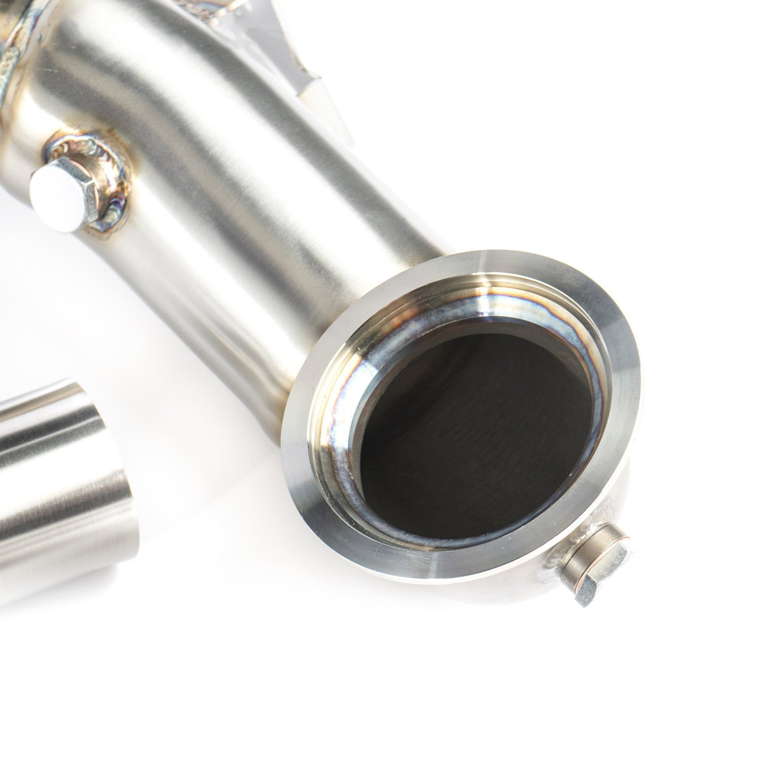 Constructed from premium stainless steel, the CTS Turbo MK8 VW Golf R/8Y Audi S3 downpipe ensures durability and longevity, standing up to the demands of spirited driving. With a generous 3.5″ inch diameter and a catless design, this downpipe optimizes exhaust gas flow, reducing backpressure and turbo lag to deliver a substantial increase in horsepower and torque.