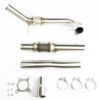 CTS Turbo is proud to release our downpipe with a 200 cell high flow catalytic converter for MK1 VW Tiguan/8U Q3 1.8T/2.0T. Each CTS MK1 Tiguan/8U Q3 high-flow cat is 100% tig welded, constructed using 3″ T304 Seamless Stainless Steel, and includes installation hardware and stainless steel clamps. Lesser products can be had without stainless steel construction, or with seamed stainless steel, which can crack and decay over time. The CTS Turbo Tiguan high-flow cat eliminates the factory downpipe, increases turbo spool up, and peak power. The increased piping diameter of 3″ allows for exhaust gases to exit the turbo and wastegate with less turbulence which all result in more power and torque throughout the entire power-band. In any turbo vehicle, an upgraded downpipe is a great idea, and this is a particularly potent power adding modification.