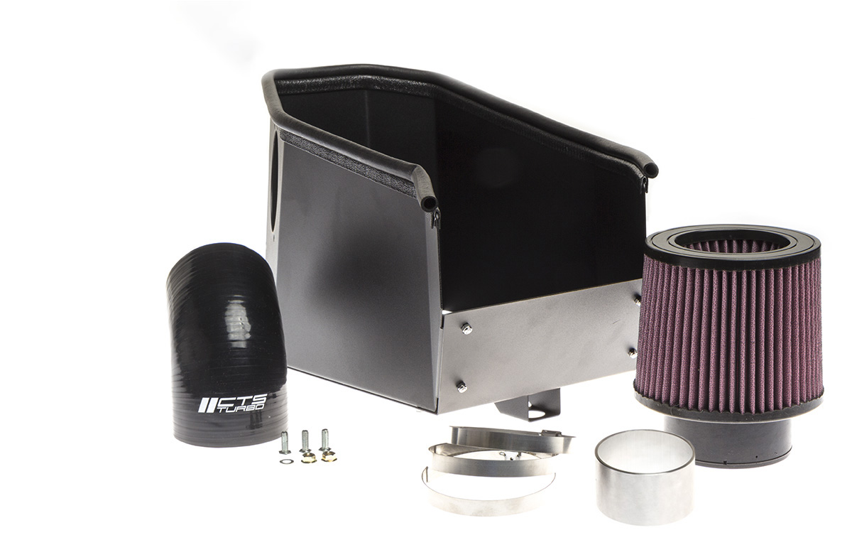 At CTS Turbo we are proud to announce our new air intake system for the MK2 TT-S. The OEM air scoop works in conjunction with our sealed airbox to seamlessly force cold air into our air intake system. Air then flows through our high flow cone air filter, which utilizes an inverted cone design for maximum engine breathing. Our high-quality silicones fit seamlessly with the OEM MAF flange allowing for smooth entry of cold air into the engine providing peak power gains ranging from 9-15HP. All of the components included in the CTS air intake system work flawlessly together to provide increased horsepower and torque throughout the entire power band and an aggressive race-inspired sound.