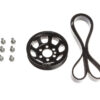 The CTS Turbo crank pulley is lightened to reduce parasitic drag on the engine. This results in faster revving and more horsepower. Included in the kit is the lightened crank pulley, 6 replacement bolts and a shorter belt. The pulley is made from T6 6061 aircraft grade aluminum and hard anodized to reduce wear. Gains of 5-7 horsepower can be expected.