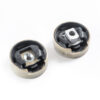 These Rear Shock Mounts are designed for easy, drop-in installation, serving as a direct replacement for the factory mounts. They effectively minimize deflection during hard cornering, preserving proper suspension geometry for better handling. Additionally, the robust bonding of the rubber to the cast aluminum mount body reduces the chances of separation and eliminates the notorious “knock” sound associated with factory mounts.