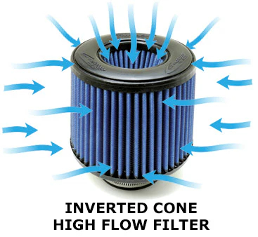 Our Burger Motorsports renewable inverted cone filters not only outflow your stock paper filter and last the life of your vehicle they also include built-in velocity stacks. Velocity stacks allow even more air to be smoothly sucked into your intake system.