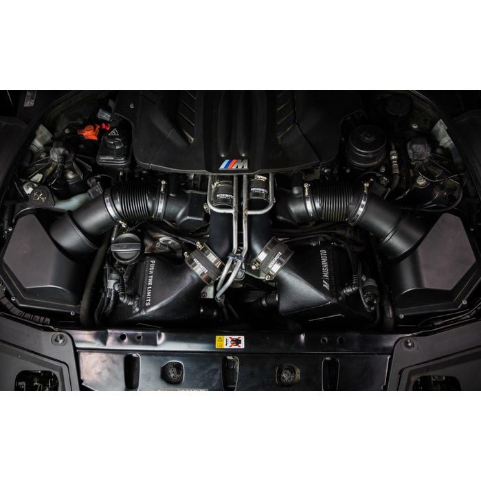 If you own an F10 or F13 M5/M6, chances are you’ve already thought about modifying it. A tune and increased boost pressure are usually one of the first mods done, but the factory plastic charge pipes may throw a wrench in your plans. The factory plastic charge pipes are a known weak link in the intake system and it’s not uncommon for them to split at the plastic welds by the turbo or completely burst along the seam, leaving you with a frustrating boost leak. The Mishimoto F1X M5/M6 Charge Pipes are a durable, full aluminum construction, expertly TIG-welded to ensure a smooth and strong airflow path for the S63’s boost. Our charge pipes are specifically designed to deliver optimal airflow with a more uniform shape from turbo to intercooler without sacrificing fitment. To provide the utmost perfect fitment, along with the charge pipes, we also include a CNC-machined 6061 aluminum bracket to hold the metal coolant lines that are supported by the factory intake tubes. Our charge pipe kit also includes a pair of matte black silicone couplers for a secure and stock styled connection to the air-to-water intercooler. The Mishimoto F1X M5/M6 Charge Pipes include the Mishimoto Lifetime Warranty for a worry-free installation.