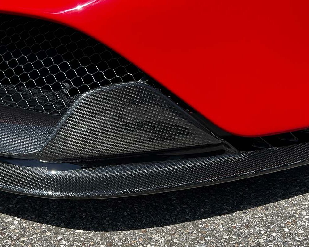 NOVITEC’s Carbon Front Bumper Flaps for the Ferrari SF90 Stradale / Spider enhance aerodynamics and add a motorsport-inspired look with precision-crafted carbon fiber construction. Designed for seamless integration, these high-quality components are available in either NOVITEC’s signature carbon weave or the OEM Ferrari weave, ensuring a perfect match with existing carbon elements. Engineered for both style and performance, they provide a striking visual upgrade while maintaining the vehicle’s aerodynamic balance.