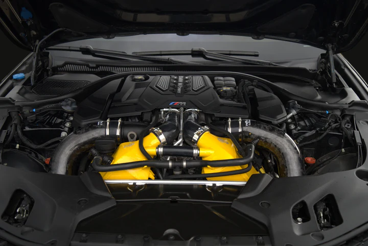 Along with the charge coolers, we have designed new and larger diameter charge pipes to accommodate the increased size of the coolers. Our charge pipes for the M5 and M8 models feature a 4 layer reinforced ply silicone material that can withstand extensive amounts of pressure with its durable construction.Â