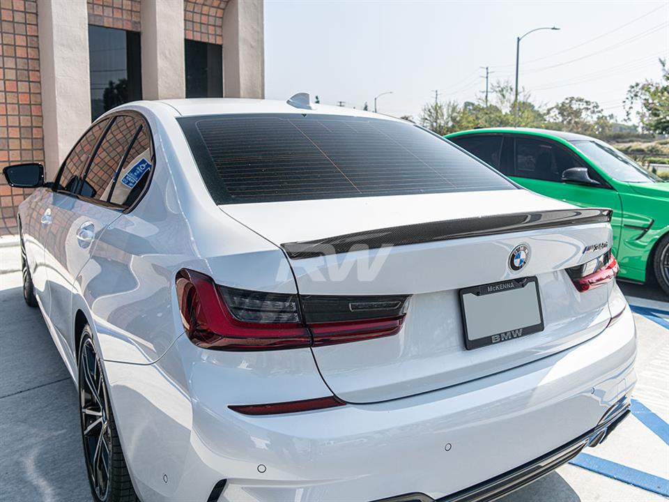 Skip to contentEnhance the back end appearance of your BMW G20 3-Series or BMW G80 M3 with our 3D Style Carbon Fiber Trunk Spoiler. This spoiler is a very popular options among other BMW models and we are proud to introduce it for the new 3-Series and M3 models. This spoiler has a sporty appearance and great fitment. They are easilly installed and uninstalled using 3M tape, which can be purchased at checkout. Our spoilers are all hand crafted using genuine carbon fiber and are clear coated for a high gloss finish. All of our pieces, including this BMW G20 G80 3D Spoiler, are backed by a fitment and quality guarantee.