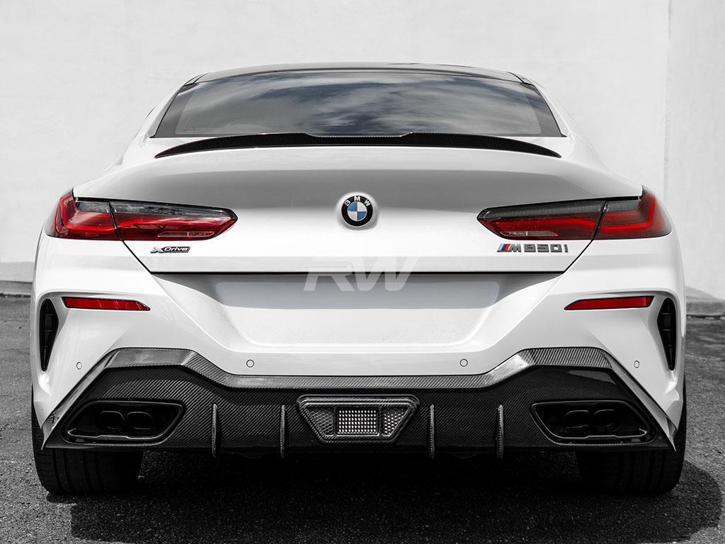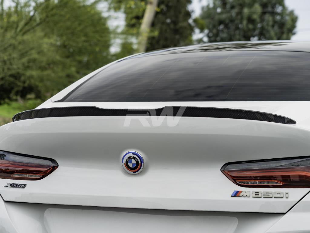 Spice up the rear end appearance for your 8 series or M8 with the carbon fiber G16/F93 trunk spoiler. Since the late model 8 series gran coupe and M8 gran coupes have the same trunk this spoiler fits all applications (840i, M850i, M8). This gran coupe trunk spoiler is beautifuly crafted from genuine full carbon fiber construction and will perfectly match other RW Carbon or OEM CF items you have on the car. Installation is completed with 3m double sided tape, opt for the installation kit at checkout and receive all needed materials to install the spoiler on your car. Each one is quality checked and shipped from our Southern California facility to make sure you get a spoiler that comes ready to fit on your BMW. Get your very own G16 or F93 M8 carbon fiber trunk spoiler today and see the difference it will make!
