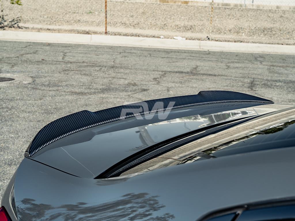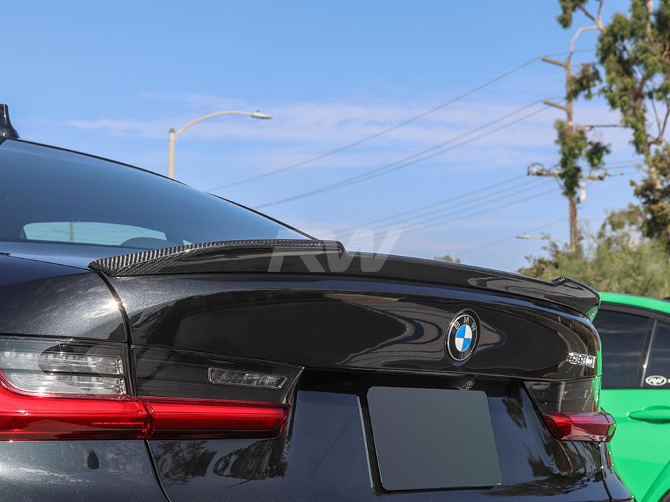 This CS Style carbon fiber trunk spoiler is a timeless design and mounts directly to your G20 330i, M340i or G80 M3 using 3M double sided tape (not included, but can be purchased at checkout). Installation takes around 30 minutes and instantly transforms the appearance of your G20 or G80. These spoilers are handcrafted using 100% real carbon fiber and are all quality checked prior to shipping all around the world. After construction, we give these spoilers are clear coat to achieve that high gloss shine. Each piece is packaged and shipped from our location in Anaheim CA. If you have any questions please do not hesitate to contact us.