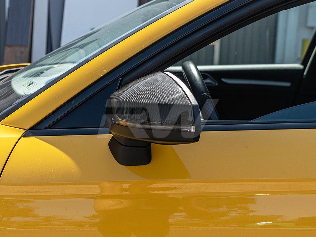 Improve the side profile of your Facelift or Pre-Facelift Audi A3/S3/RS3 with these carbon fiber mirror cap replacements. These mirror cap replacements are a must have for someone who is adding carbon fiber to their vehicle. Mirror caps are easily one of the more visually appealing additions to add to your vehicle simply because the mirrors stick out from the car. These mirrors feature our traditional 2×2 carbon fiber weave to ensure a seamless match to your other carbon fiber pieces and also come with the option of having the cutout for the blind spot lamp. These are a direct replacement to the stock mirror cap replacements so the fitment will be spot on and if not, these are also backed by our fitment and quality guarantee to ensure a quality piece. NOTE: This item is sold in pairs and these are replacement mirror covers and take the place of the existing one. They are not mirror cover overlays.