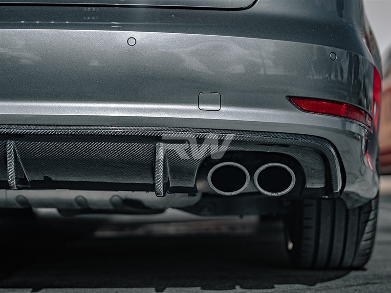 Professional installation is always recommended for RW Carbon’s products including this Audi carbon fiber diffuser. For proper installation the rear bumper MUST be removed.