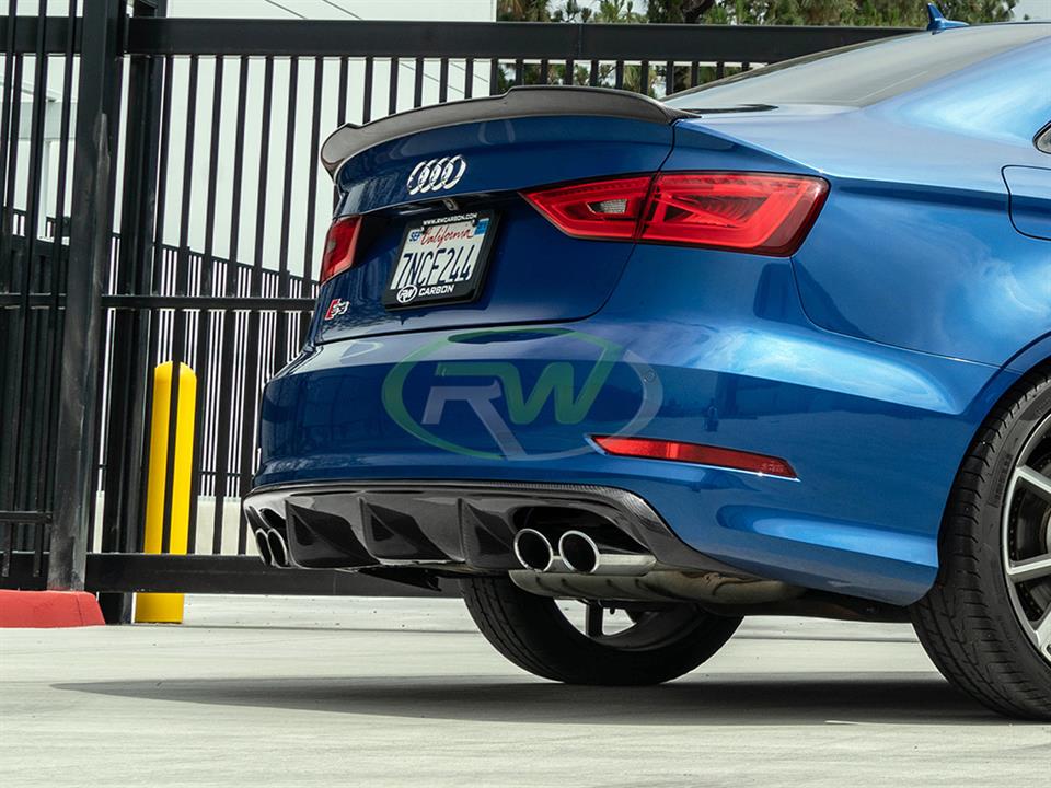 Introducing our latest item for your Pre-Facelift Audi S3, or A3 S-Line – our Carbon Fiber Rear Diffuser. This Diffuser is a direct replacement of your factory plastic diffuser and installs using the same mounting locations. We handcraft all of these Audi 8V diffusers from genuine 2×2 carbon fiber that will nicely match other RW items such as our front lips or trunk spoilers. Along with an aggressive back end appearance, this diffuser is also backed by our fitment and quality guaranteed to ensure that you’re receiving a high quality product that comes ready to install on your vehicle. Each diffuser ships from our CA warehouse and is also available for installation should you live close to us.