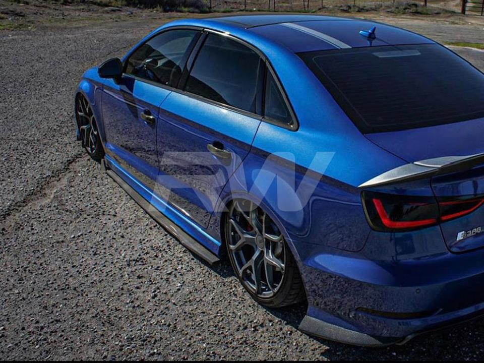 Introducing our latest side skirt extention design for your Audi A3, S3, or RS3,. These GTX Carbon Fiber Side Skirt Extensions give a superior look to the side profile of your vehicle. Our side skirt extensions give the car a bolder and race inspired feel compared to the stock side profile. Our side skirt extensions are made of real 2×2 carbon fiber weave which will also match any other RW Carbon fiber parts that you may acquire in the future or already have on your Audi. These side skirt extensions are also finished with a UV Resistant clear coat which will help combat any fading or chipping that may occur while you’re on the road. Please reach out to a CF expert if you have any questions.