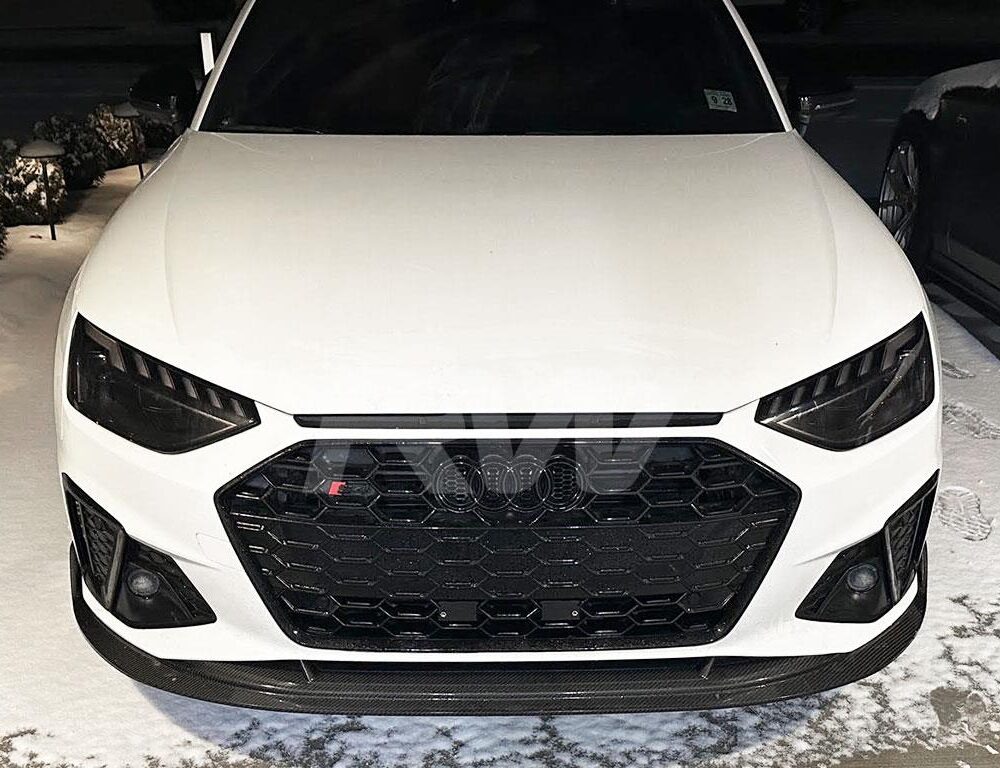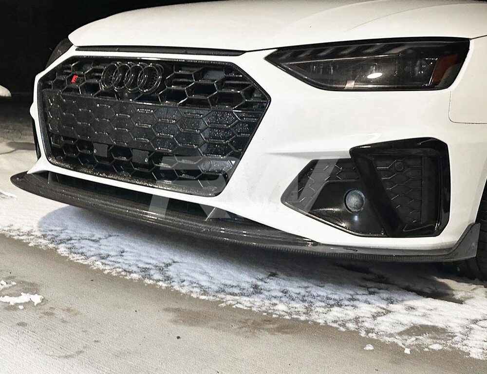 Fed up with the mundane appearance of the front end on your Audi B9 A4 or S4? RW Carbon provides the perfect remedy with this authentic carbon fiber front lip spoiler. Unlike the imitation materials you might stumble upon on Ebay, this spoiler is crafted from genuine carbon fiber. Installing it is a breeze, requiring only 3M tape and self-tapping screws—no additional modifications necessary. Designed exclusively for 2020 and later Audi A4 S Line and S4 Facelift models, this front lip transforms your car’s aesthetic in just under an hour, imparting a fresh and bold style. Each Audi front lip undergoes rigorous quality checks at our USA facility before being shipped worldwide. Elevate the look of your A4 or S4 today by getting your hands on one!