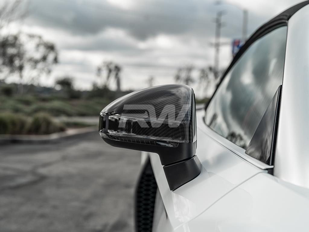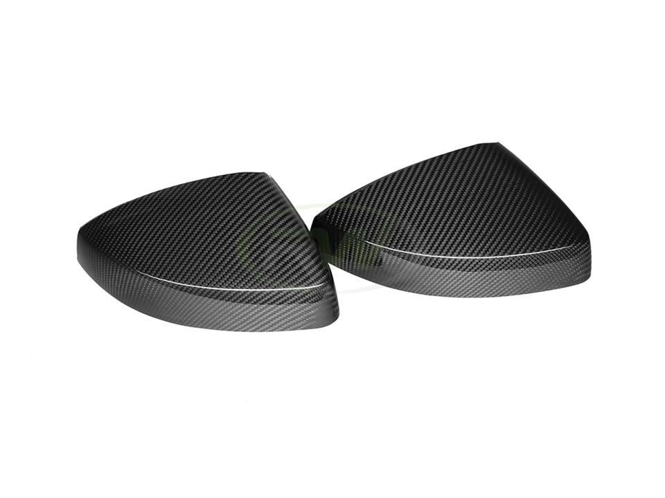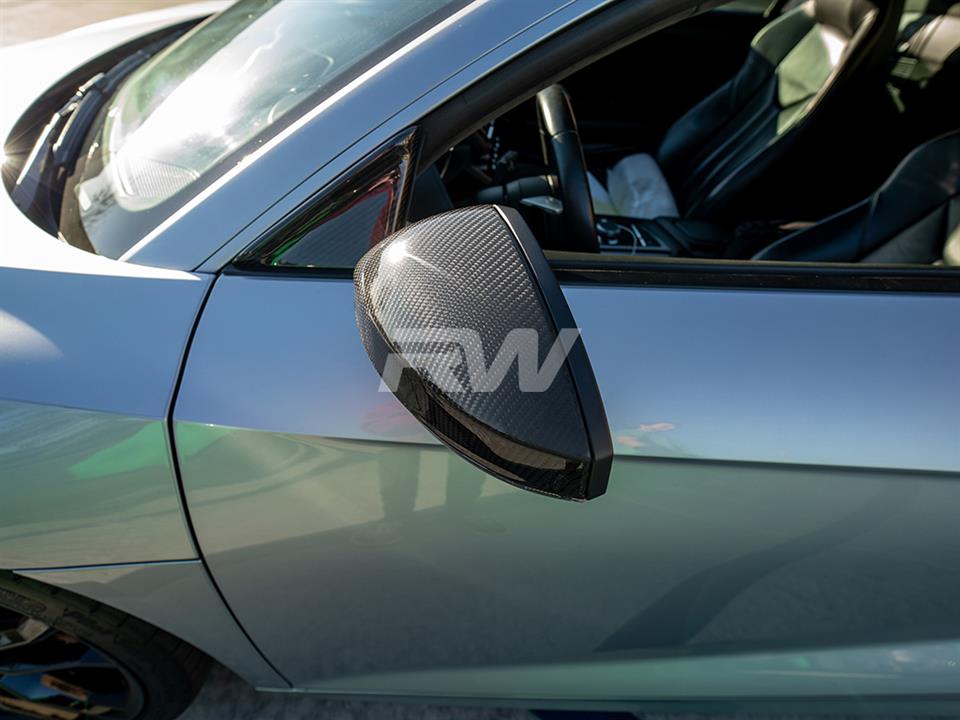 RW Carbon highly recommends that you have all our parts installed by a professional, including these carbon fiber mirror cover replacements. Â These R8 mirror covers replace your existing mirror cover housing using the same mounting locations.