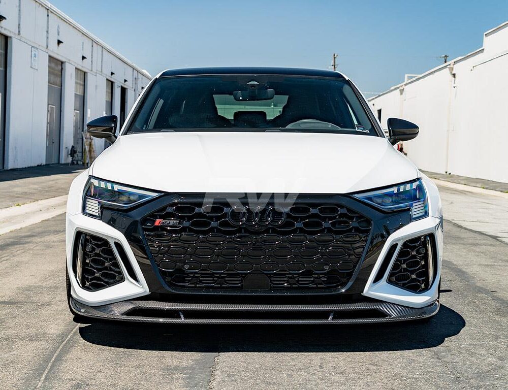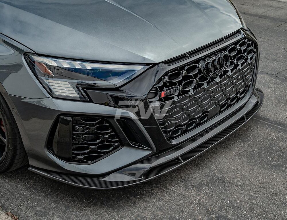 Add some aggressive styling to your Audi 8Y RS3 today with one of RW Carbon’s Carbon Fiber Front Lip Spoilers. We produce this piece out of 100% dry carbon fiber, making this product ultra-lightweight and durable. It is finished with our UV-Resistant clear coat to help combat fading and discoloration. Not only does the clear coat fight discoloration but it will also help prevent chipping and gives you that high gloss finish. Our front lip is installed with self-tapping screws, which are provided when you purchase the lip from us. If you have any further questions we urge you to contact us.