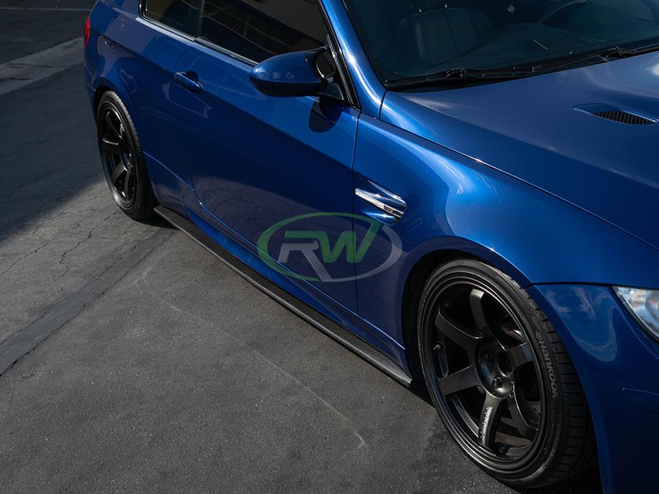 A set of Carbon Fiber Side Skirt Extensions are the perfect mod to complete a carbon fiber theme on a BMW E92 or E93 M3. These side skirt extensions are made to fit all E92 coupe and E93 convertible M3 models. They are constructed out of genuine carbon fiber which make them very lightweight and strong. Each one is then given a clear coat to protect it from road debris and give it a beautiful mirror-like shine. RW Carbon takes much pride and joy from the products we sell so we back each one including these CF side skirt extensions with a fitment guarantee. Installation is made easy with self-tapping screws. If you have any questions, please contact us.