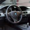 Finish off the interior look of your BMW E90 M3 sedan, E92 M3 coupe, E93 M3 convertible or your BMW E82 1M with this beautifully crafted carbon fiber steering wheel trim. This steering wheel trim piece simply replaces your current trim for a personalized interior piece. The trim features 1×1 carbon fiber weave that is finished with a clear coat making it resistant to cracking and scratching. This product is not merely an overlay, installation will require you to remove your factory steering wheel trim piece.