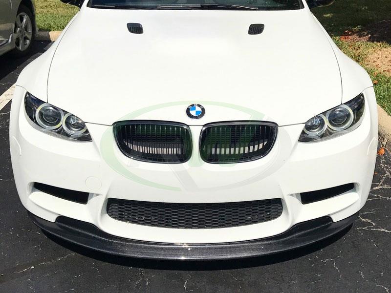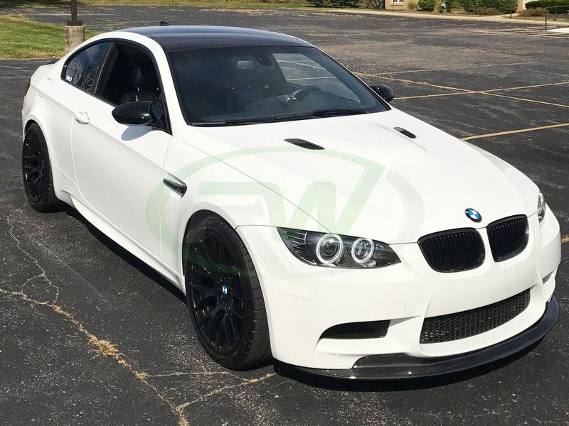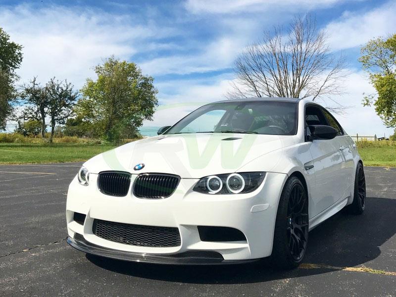 Make a statement with your E9x M3 by installing a new RW Carbon fiber GTS style front lip spoiler. This carbon fiber front lip takes the already aggressively styled M3 to another level. The install process is so quick and easy, you will be wishing you did this modification years ago. Using self-taping screws the install takes about 45-60 minutes and definitely helps to have a shop or buddy help you out. Each piece is hand crafted by RW and comes with a fitment and quality guarantee. Before shipping out from our SoCal location we quality check each piece again to make sure it is free of any defects. So what are you waiting for? Get your very own E9x M3 GTS style front lip today and see the difference it makes first hand.