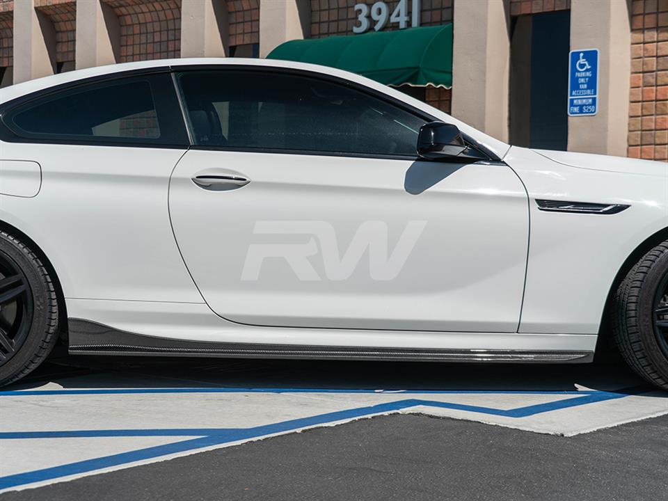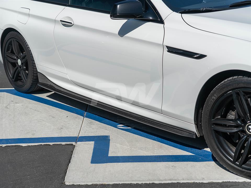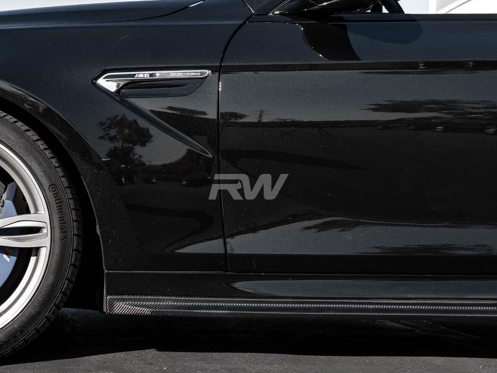 That final piece you have been looking for to complete the exterior look of your 6 series or M6 are these carbon fiber side skirt extensions. We have these 3d style side skirt extensions available for your gran coupe, coupe, and convertible applications. We craft these extensions from genuine 2×2 carbon fiber and finish them off with a thick clear coat which makes them very durable and resistant to fading and yellowing. Installation is bolt on, requiring no special modifications to your 640i, 650i, or M6. If your F06, F12, or F13 already has an RW carbon fiber front lip, diffuser, and spoiler on it then you need these carbon fiber side skirt extensions to complete the look.