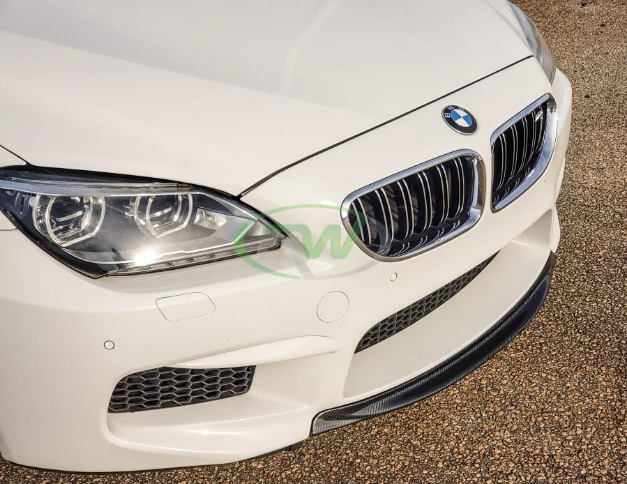 If you are looking for a subtle front lip choice for your BMW F06, F12 or F13 M6, but want to give it a taste of carbon fiber, try out RW Carbon’s center front lip. This piece is made using 100% real 2×2 carbon fiber and is clear coated for a brilliant shine and protection out on the road. The clear coat also makes the piece easy to clean. This front lip spoiler is simple to install using a few self-tapping screws and can be done in under 30 minutes. Each piece is quality checked in our Southern California warehouse before shipping worldwide. This center front lip will fit all 2013-2017 F12 convertible, F13 coupe and F06 gran coupe M6 models. If you have any questions please reach out to us.
