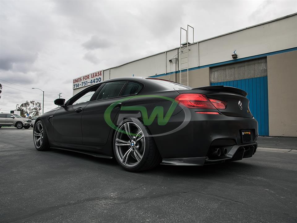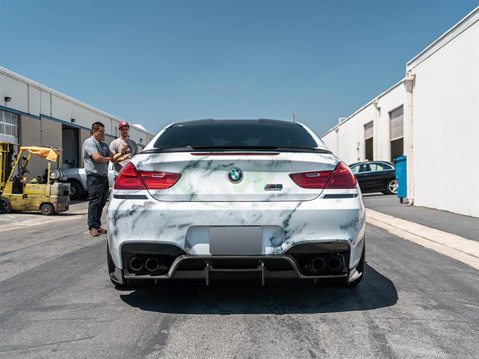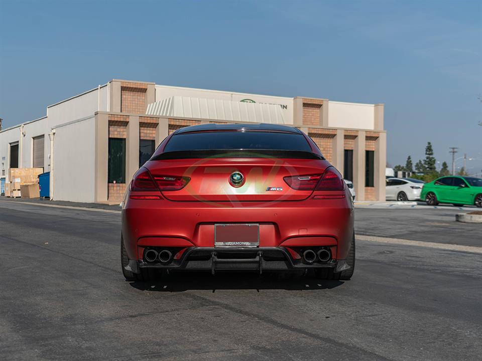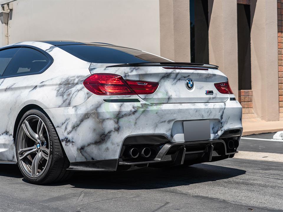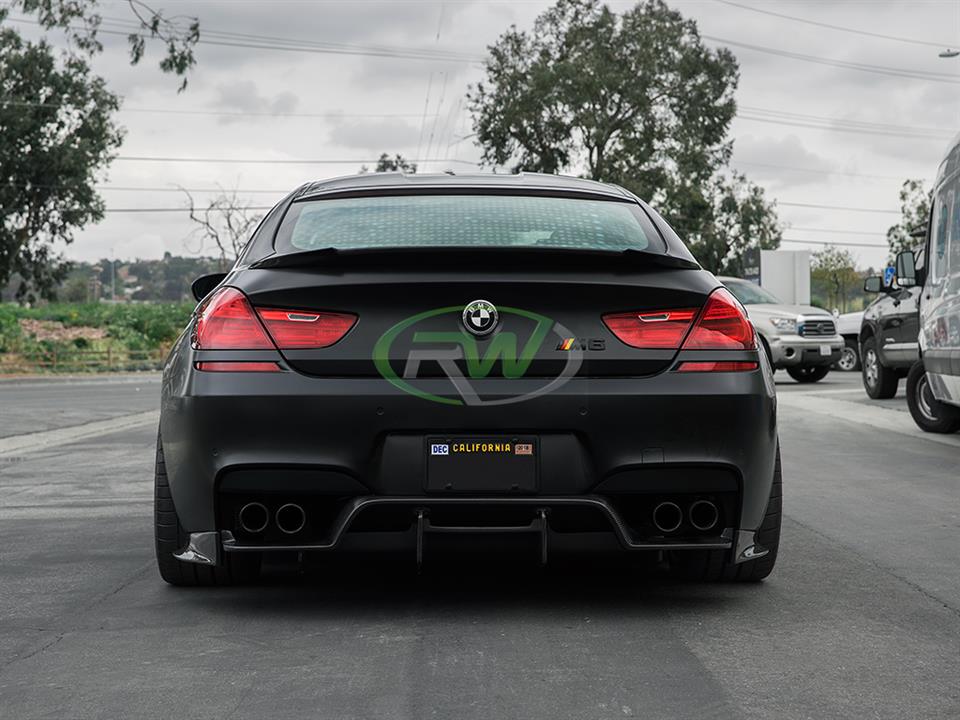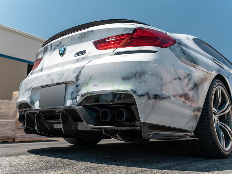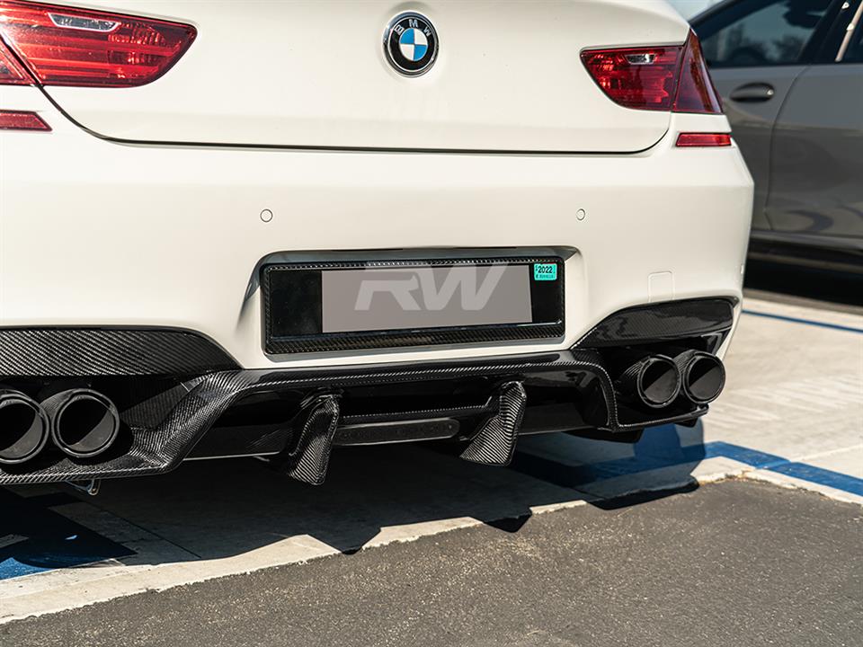 This GTX Carbon Fiber Rear Diffuser for the 2012-2019 BMW F06, F12 and F13 6 Series and M6 is by far our most aggressive and intricate diffuser available for these models. They are hand made using real carbon fiber fabric in a 2×2 weave pattern and are clear coated for a glossy finish. The thick clear coat also helps to maintain the integrity of the carbon fiber and keep the product looking new for many years (with the proper care and upkeep). Due to the large size of this 6 series and M6 diffuser, RW Carbon highly recommends that you have a professional body or performance shop do that installation. This kit comes with 4 pieces plus the hardware. That includes the undertray, diffuser and two side rear bumper skirts. Each GTX diffuser is quality checked and carefully packaged to ensure your diffuser arrives safe and sound. If you have any questions, please contact us today.