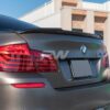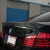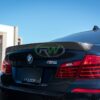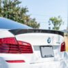 A new carbon fiber trunk spoiler is the easiest CF modification to improve the cosmetics of your BMW F10 5 series or M5. This spoiler simply installs with 3M double sided tape, which can be purchased during checkout and takes about 30-45 minutes to install. These DTM trunk spoilers fit all F10 models which include the 528, 535i, 550i and the M5. Each one is hand crafted and is backed by our fitment and quality guarantee. Once crafted we finish them off with several coat of clear for a deep and brilliant shine that will not only look great but will help to protect it from the elements. If you have had your sights on your first pieces of carbon fiber for your F10 BMW or just your next piece, then this DTM spoiler is a great choice.