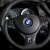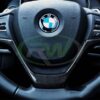 Professional installation is always recommended for RW Carbon’s products including this BMW carbon fiber steering wheel trim. This trim piece replaces your existing steering wheel trim and uses the same mounting locations.